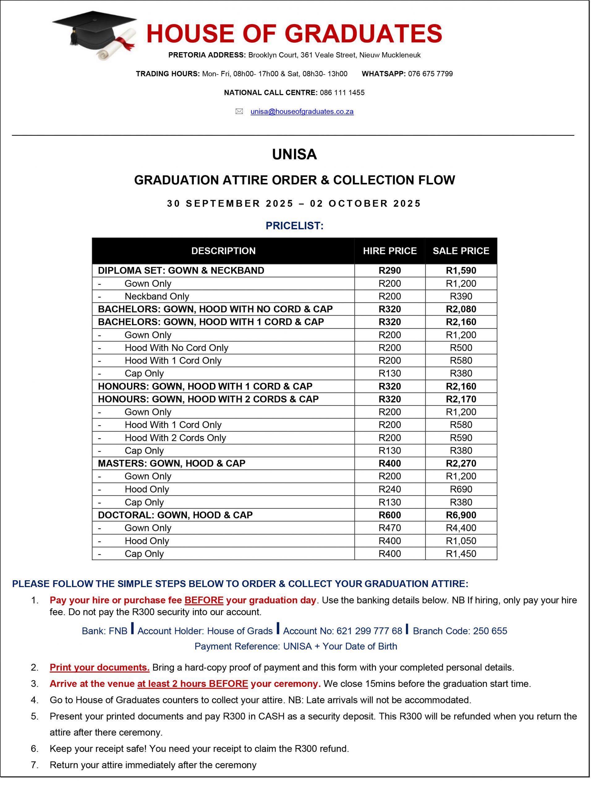HOG Pricelist To UNISA- 2020 GROUP-1